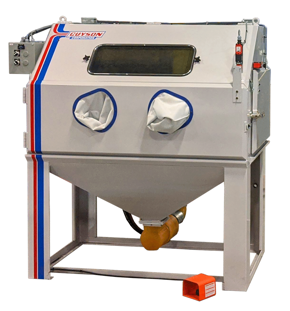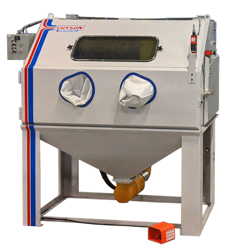 The Guyson Model 7 Manual Blast Cabinet is engineered for oversized components and high-throughput production environments. Its extra-wide finishing chamber makes it ideal for cleaning, deburring, and surface preparation across a wide range of industries.